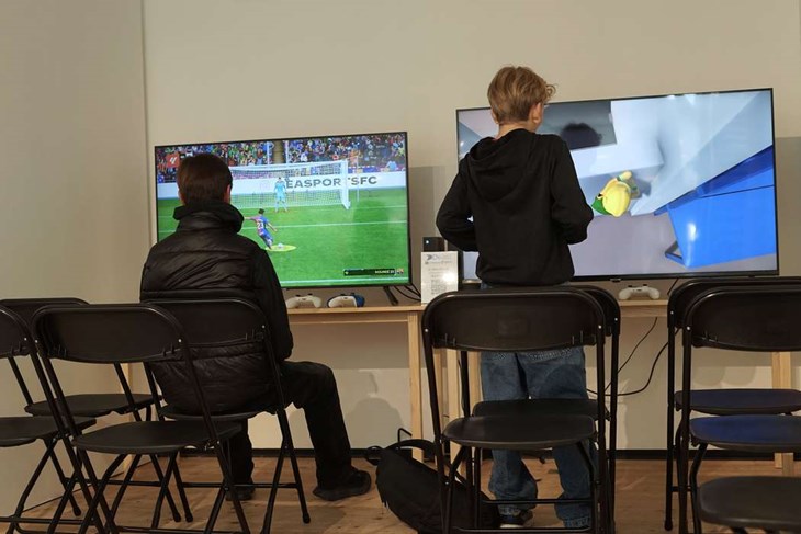 KONSOLLER. I Konstkuben fanns flera Xbox där man kunde testa i princip alla spel och även möjlighet att spela tillsammans. Foto: Victoria Rubinsson