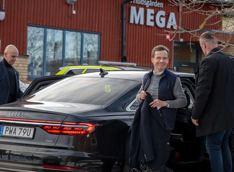 Det var en påtaglig spänning i korridorerna inför att statsministern för första gången skulle besöka Vallentuna gymnasium. Och det var inte särskilt svårt att räkna ut att statsministern var på ingång när två blankpolerade svarta bilar och en polisbil rullade fram till sidoingången. Först klev en livvakt ut, sedan statsminisern, följt av fler livvakter.