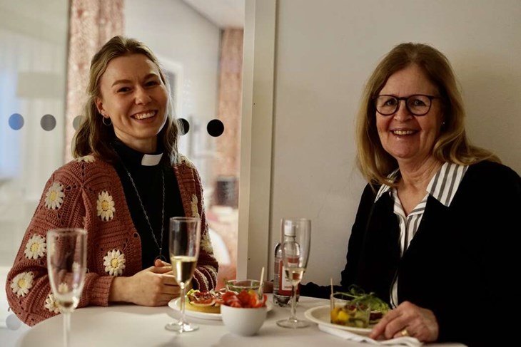 DIAKON. Karolina Ramse och Monica Värnberg från Vallentuna församling är ofta ute och håller andakt på äldreboendena och Monica kommer bli den som håller andakt här på Villa Kristineberg. Foto: Loke Johansson