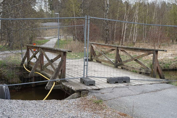 Sist kommer den gamla träbron, som ligger vid våtmarksparken intill Stockholmsvägen, att rivas och bytas ut mot en ny, välvd träbro som ska passa in i miljön. Redan nu kan man se att bron har spärrats av med staket inför rivningen.