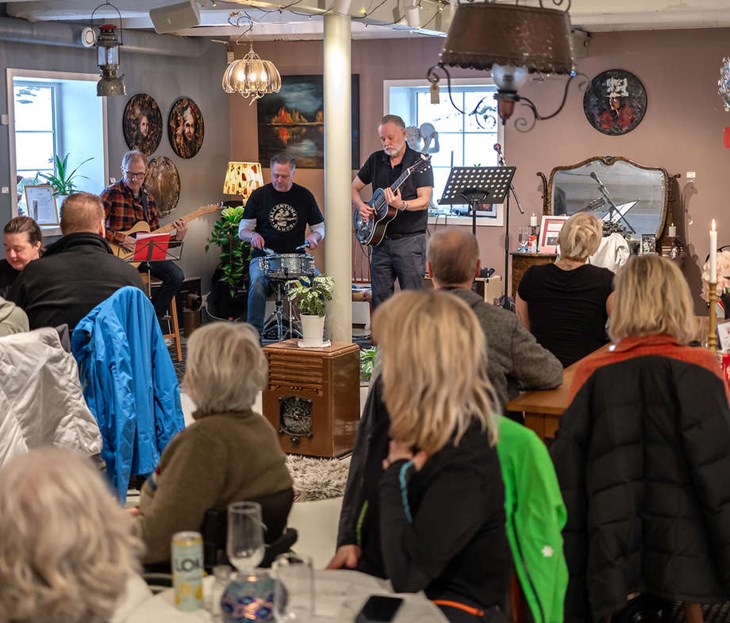 – Så nu har vi sagt att vi fortsätter bluesa i fikavolym en gång i månaden på caféet.