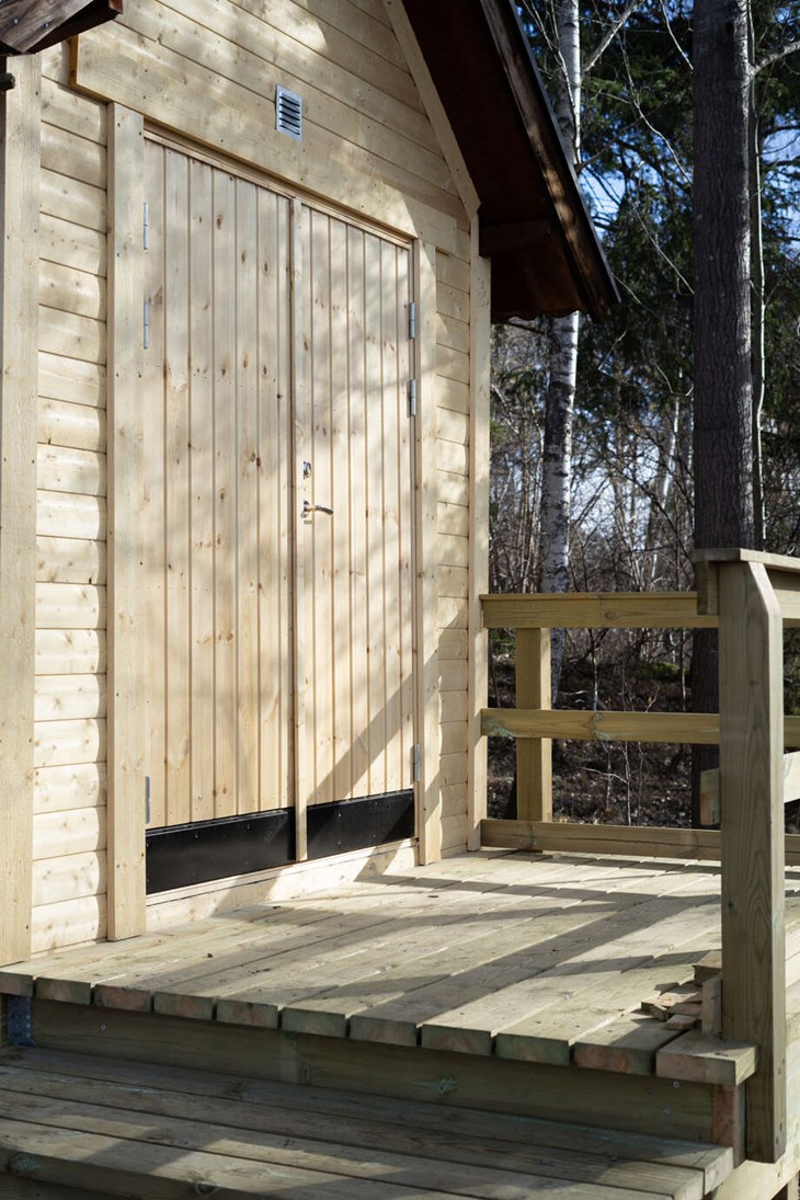 Intill huset finns även vindskyddet som kom upp strax före jul och som använts flitigt. Både vindskyddet och uthuset kommer att målas i järnvitriol som kommer ge trät en gråare nyans. Ännu lite längre bort, innan lutningen ner mot vattenkanten, kommer det att anläggas en utkiksplats med bänk.