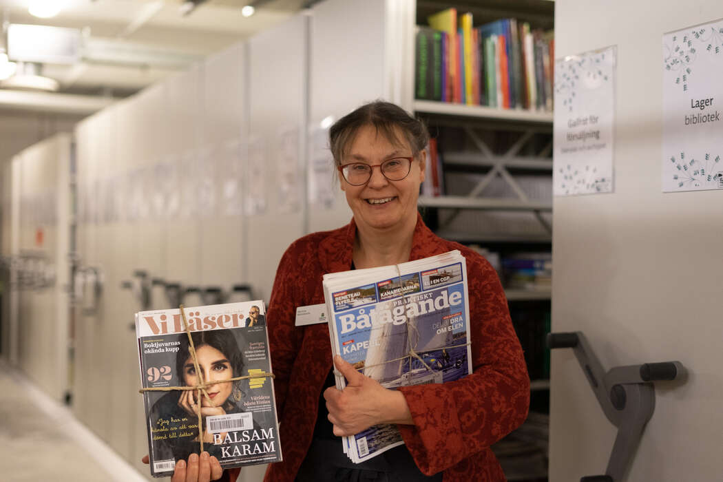 – Rensas gör det överallt och det är väl olika hur bibliotek gör men oftast åker det nog ner i pappersinsamlingen, säger Martina som tycker det är roligt att tidningarna får leva vidare.