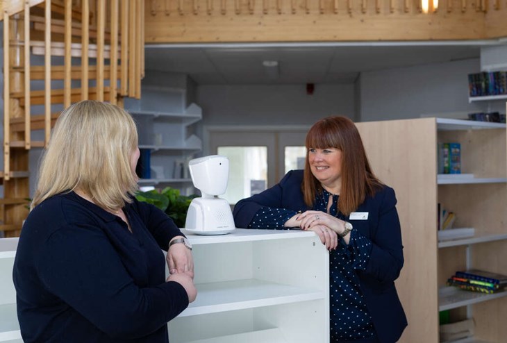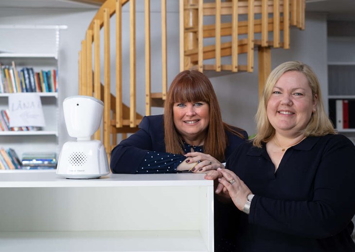 På Lovisedalsskolan står en liten robot på bordet framför Jacqueline Humphries och specialläraren Cecilia Malmstedt. I över ett och ett halvt år har robotar funnits tillgängliga för elever som av olika anledningar inte tar sig till klassrummet.