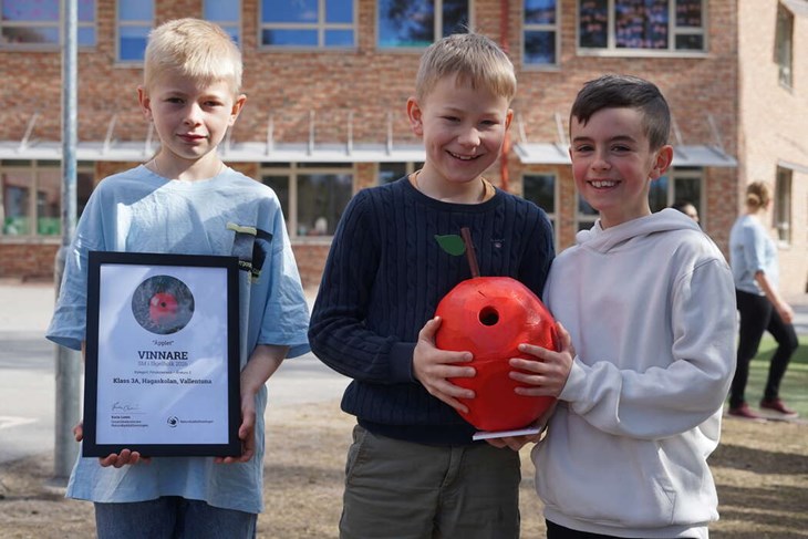 Svenska folket har sagt sitt. Sveriges bästa fågelholk har snickrats av klass 3A på Hagaskolan. För andra året i rad tar klassen hem segern i tävlingen och denna gång med bidraget ”Äpplet”.
