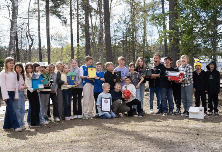 SEGERVRÅL. Klass 3A på Hagaskolan vinner SM i fågelholk för andra året i rad. Foto: Loke Johansson
