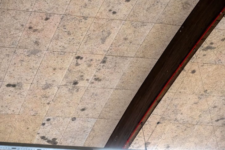 MÖGEL. Hela innertaket i A-hallen är angripet av mögel. Foto: Roffe Andersson