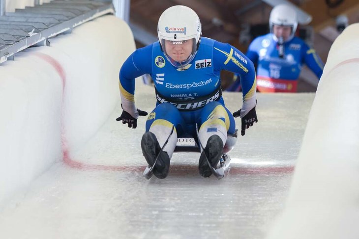 SVERIGE. Rodelsyskonen Tove och Svante Kohala representerar Sverige i OS. På bild är Tove precis efter start. Foto: Privat