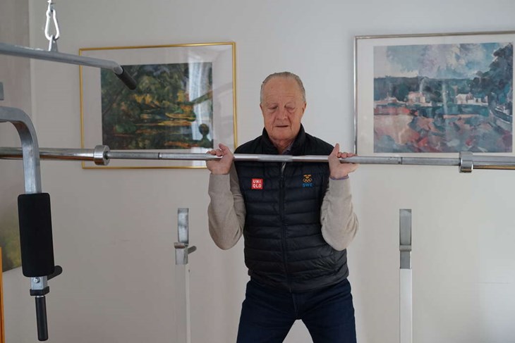 SQUATS. Hemma i Rosengården har Per-Anders ett litet gym där han kan hålla sig i form. Foto: Loke Johansson