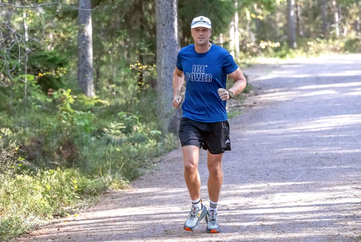 Hemma på löpbandet kombinerar han långpass med att följa sina favoritlag Mora och Leksand i hockey.