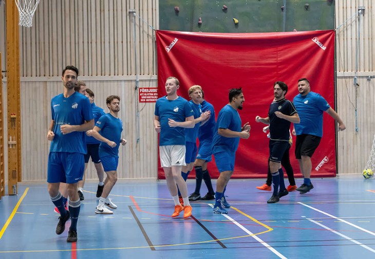 FÖRSTA TRÄNINGEN. Som uppflyttade i division 5 kom tolv spelare till första inomhuspasset. Foto: Roffe Andersson