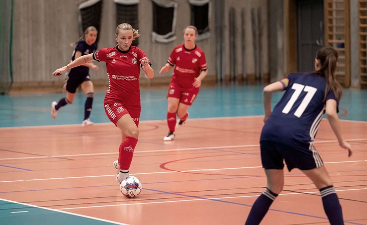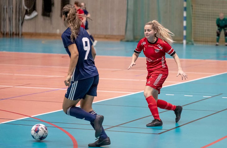 MÅLSKYTT. Emeli Mårtensson är en av flera som lirar sin fotboll i Frej Täby, men i Vallentuna under futsalsäsongen. Foto: Roffe Andersson