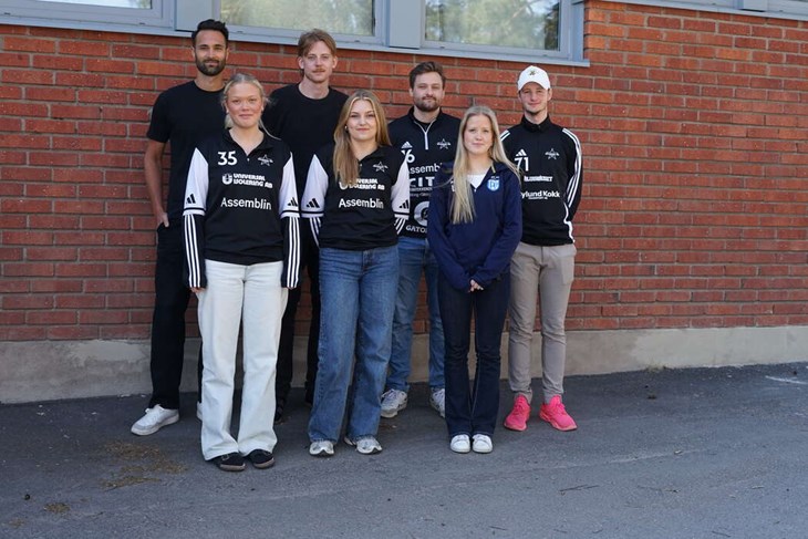 Rosendalsskolan får ihop ett vasst lärarlag i både innebandy och fotboll. Övre raden f.v: Martin Mellkvist, David Holmberg, Joakim Ekerberg och Lucas Reher. Främre raden f.v: Agnes Wall, Wilma Mothander och Leontine Belin. Foto: Jonny Andersson