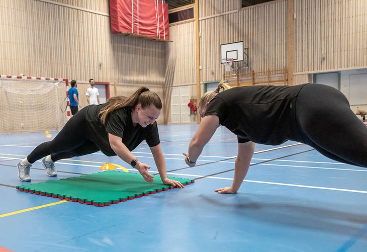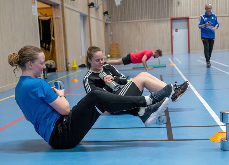 BÅLTRÄNING. Matilda Öhman uppskattar fyspassen och här är det bålen som får en genomkörare tillsammans med Freja Andersson. Foto: Roffe Andersson