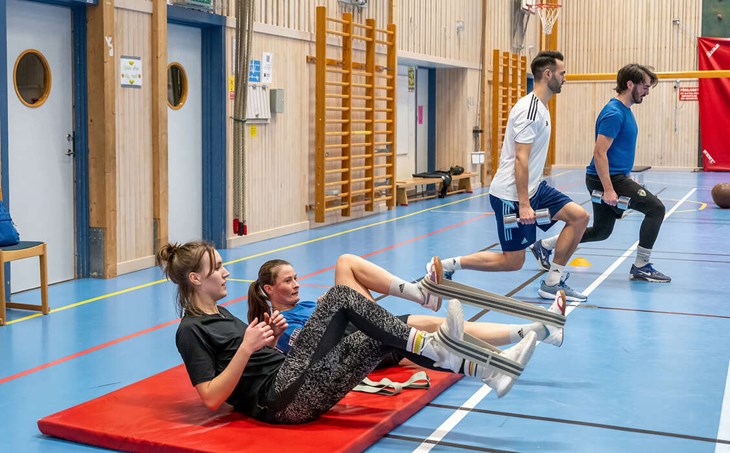 SAMMANHÅLLNING. En kväll i veckan tränar dam- och herrlaget tillsammans. Foto: Roffe Andersson