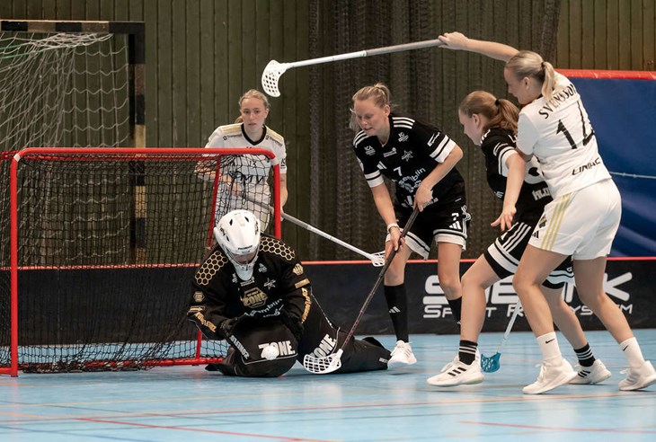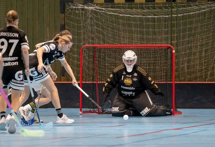 NÄRA HJÄLTEGLORIA. Vallentunamålvakten Felicia Nordin hade fullt upp hela matchen och såg i två perioder ut att kunna rädda poäng, men det blev några baklängesmål när laget satsade framåt. Foto: Roffe Andersson